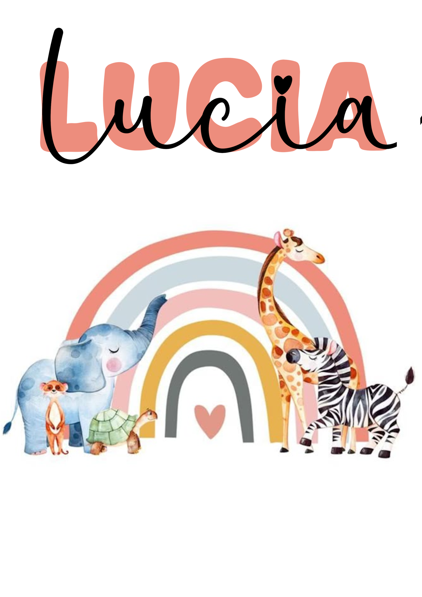 Encantadora lámina infantil con un dulce arcoíris en tonos suaves acompañado de adorables animales de la selva: elefante, jirafa, cebra y pequeños amiguitos. Un diseño tierno y alegre que transmite calma, fantasía y dulzura, perfecto para decorar habitaciones de bebé y niños. Personalizable con el nombre, se convierte en una pieza única y especial, ideal como regalo de nacimiento, bautizo o cumpleaños. Añade un toque mágico, cálido y lleno de ternura a cualquier espacio infantil.