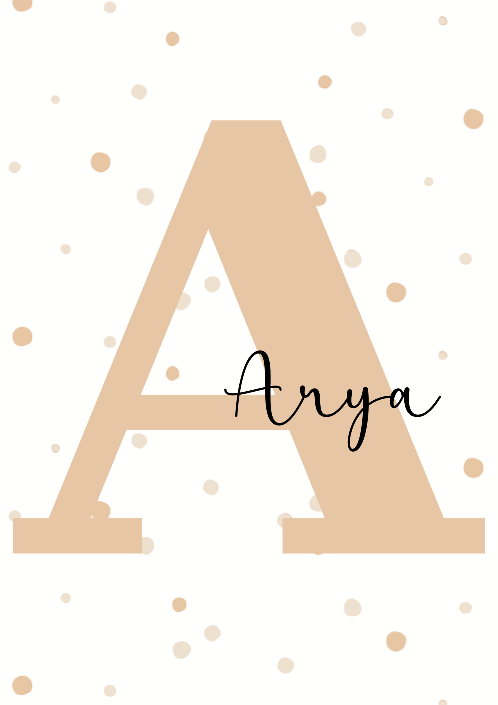 Elegante lámina infantil minimalista con la inicial en grande en tono beige y el nombre en delicada tipografía manuscrita. El fondo con suaves puntitos aporta un estilo dulce, cálido y atemporal, perfecto para decorar habitaciones infantiles con un toque moderno y armonioso. Personalizable con el nombre, es un detalle único y especial, ideal como regalo de nacimiento, bautizo o cumpleaños. Combina fácilmente con cualquier decoración y añade un toque delicado, tierno y personalizado al espacio de tu peque.