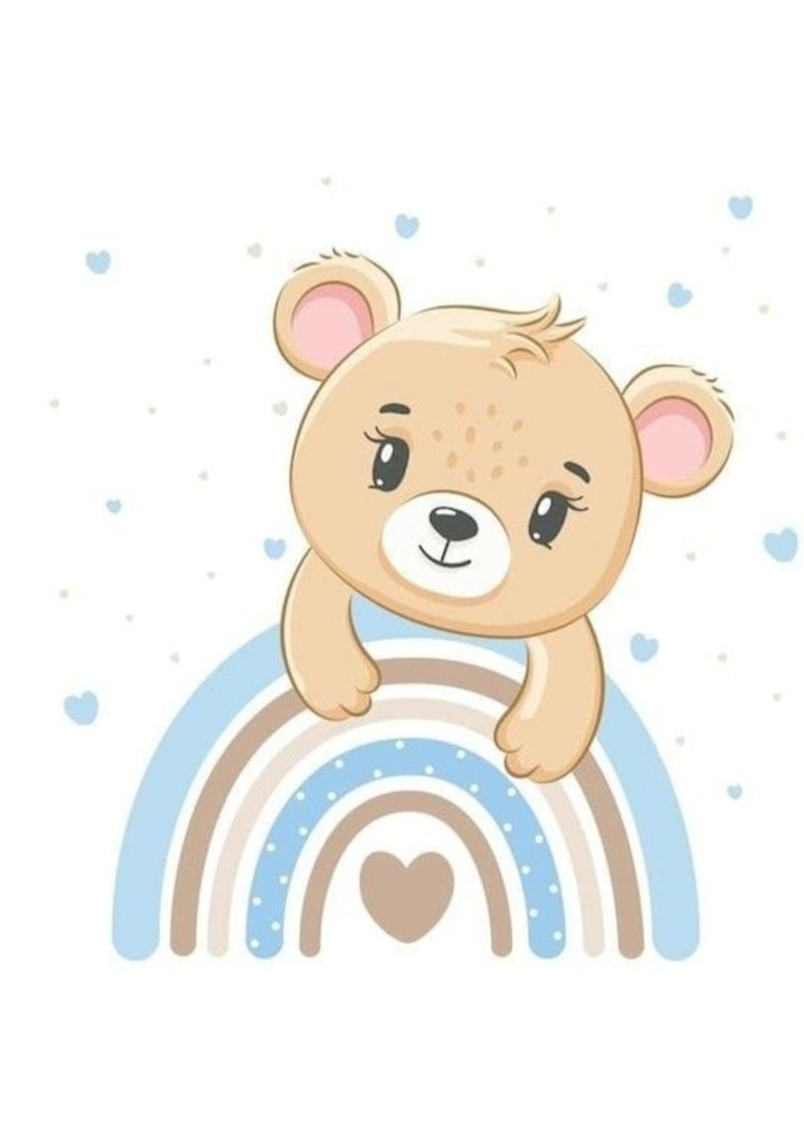 Una encantadora lámina infantil con un dulce osito apoyado sobre un suave arcoíris en tonos pastel, rodeado de pequeños corazones. Su diseño transmite ternura, calma y dulzura, ideal para decorar habitaciones de bebé o niños creando un ambiente acogedor y lleno de cariño. Perfecta como regalo para nacimientos, bautizos o cumpleaños, aportando un toque mágico y delicado a cualquier espacio infantil.
